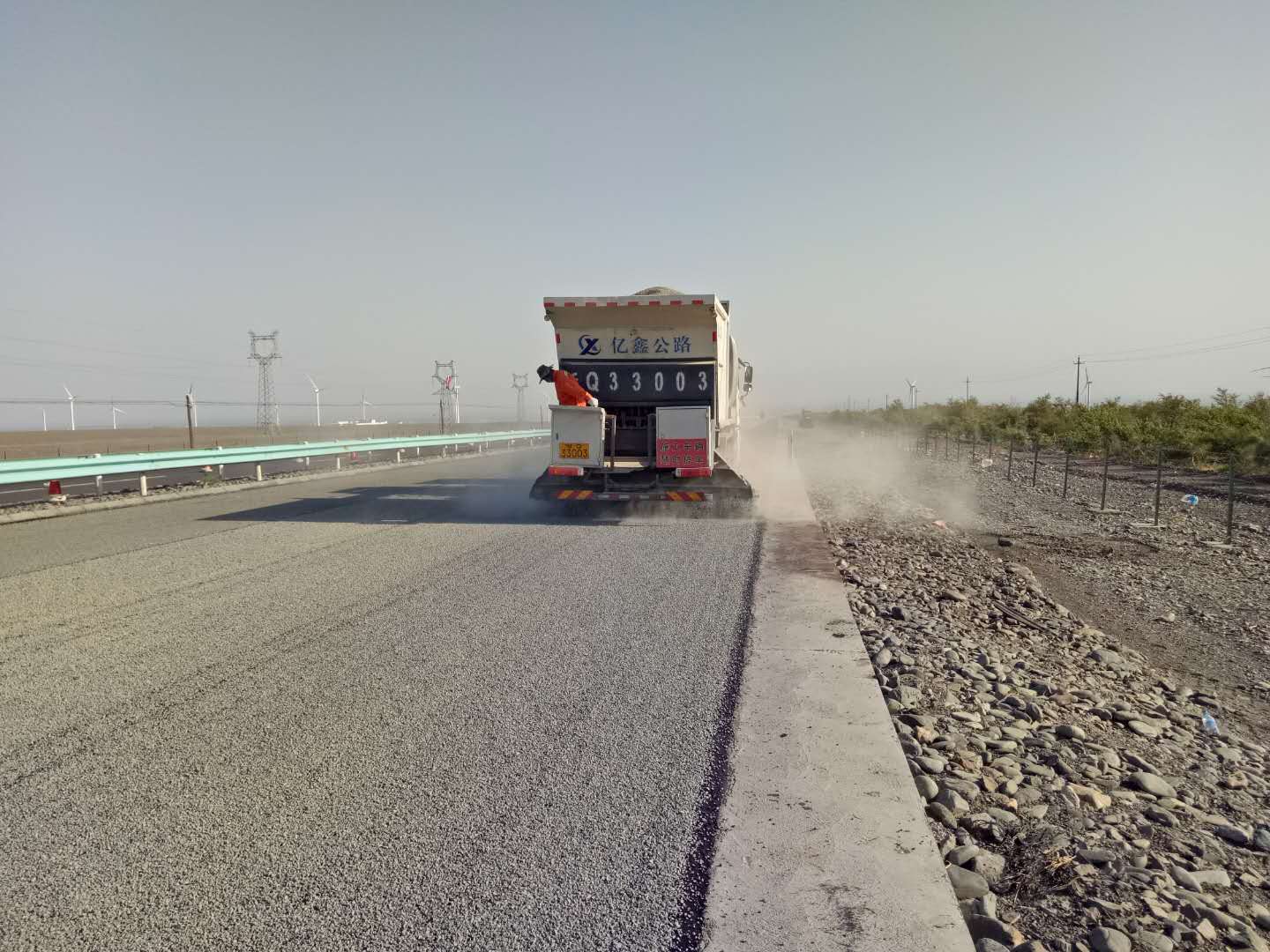 碎石封層施工現(xiàn)場(chǎng)